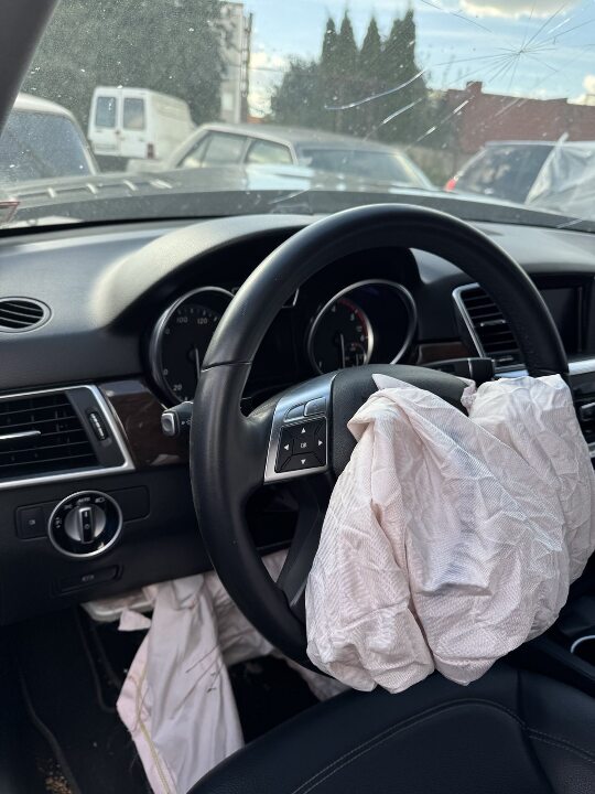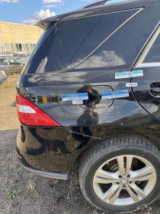 Транспортний засіб марки MERCEDES-BENZ ML 350, легковий, рік випуску 2012, чорного кольору, ДНЗ BC2002TP, номер шасі (кузова, рами): 4JGDA2EB5CA096576, об’єм двигуна та паливо – 2987 см3, дизель, колір чорний. Наявні Свідоцтво про реєстрацію транспортного засобу та ключі. КТЗ не на ходу, його технічний стан відповідає терміну експлуатації. При візуальному огляді КТЗ виявлено наступні дефекти: забруднення, пошкодження, потертості обшивки салону та сидінь; дефекти лакофарбового покриття. Пошкоджені (деформовані, тріснуті) та потребують заміни наступні складники: бампер передній; гратка радіатора; фара права; капот; крило переднє праве; підкрильник передній правий; дзеркало зовнішнє праве; подушка безпеки водія та безпеки колін.