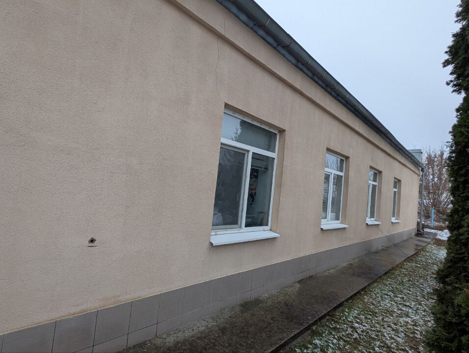 На фасаді будинку наявні тріщини в облицювальній цеглі, в житловій кіманті по кутах просіла підлога, на кухні у вікні пошкоджено скло.