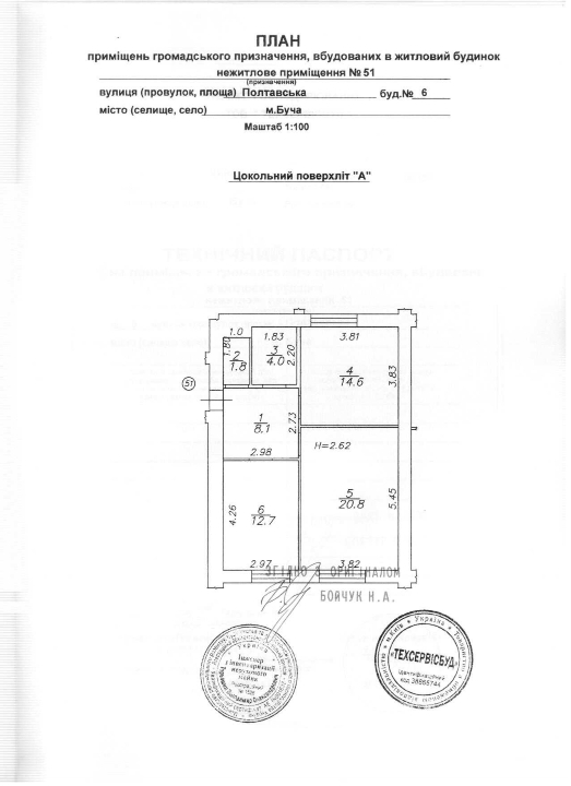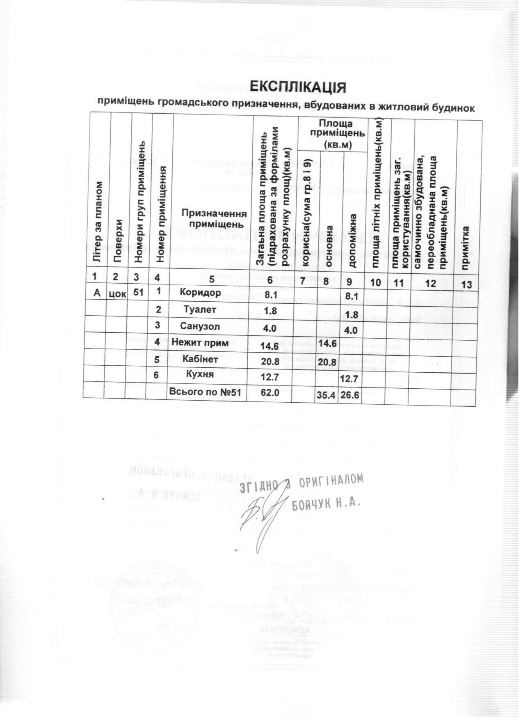 Нежитлове приміщення складається з наступних приміщень: