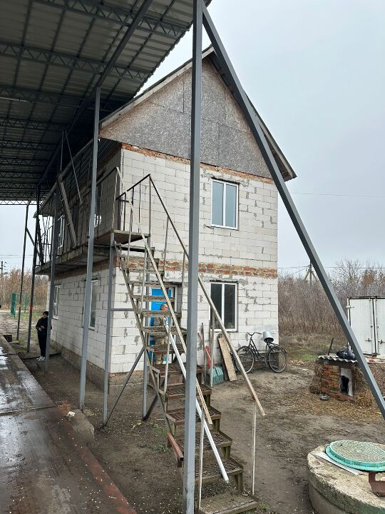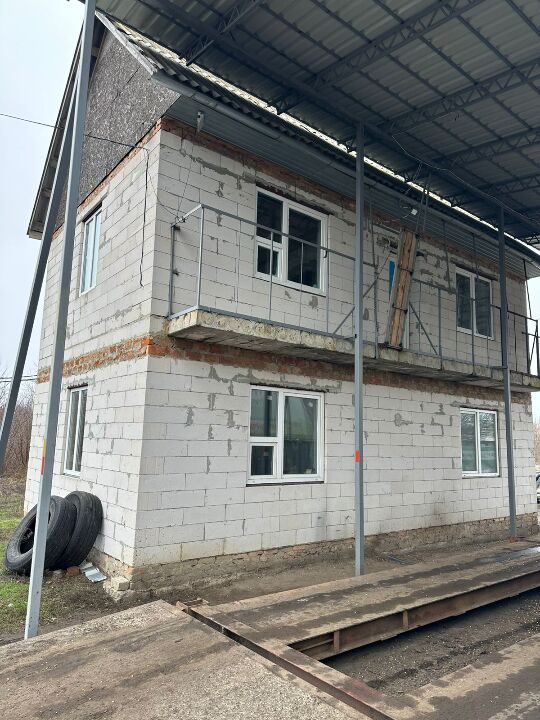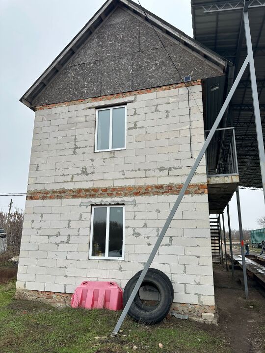 Будинок складається з трьох поверхів, матеріал зовнішніх стін – цегла, матеріал перекриття – залізобетон, покрівля – метало-черепиця, фундамент – бетон, рік побудови – 2004.