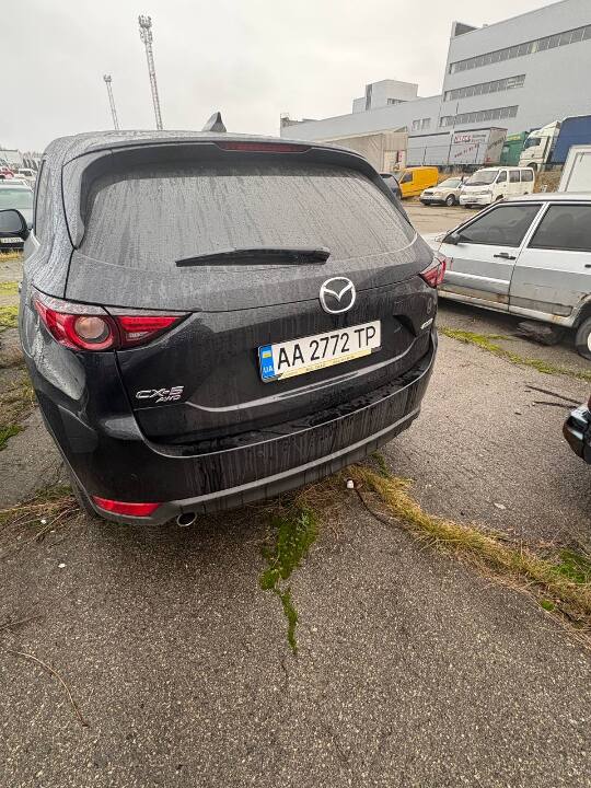 Транспортний засіб - автомобіль марка: MAZDA, модель CX-5, шасі (кузов, рама) JM3KFBCL0H0217723, 2017 року випуску, тип – ЗАГАЛЬНИЙ ЛЕГКОВИЙ УНІВЕРСАЛ, колір – ЧОРНИЙ, державний номер АЕ8188КВ, об’єм двигуна: 2488 куб. см., вид пального: бензин, коробка передач: автоматична, пробіг: невідомий, свідоцтво про реєстрацію т/з: відсутнє, ключі: відсутні, технічний стан: сколи та подряпини ЛФП по периметру авто, потертості ЛФП передній бампер, задній бампер, диски литі R17 - 4 шт., гума R17 235/65, виробник Kapsen - 4 шт., знос більше 20%. На т/з встановлений номерний знак АА2772ТР незаконний, якого не існує