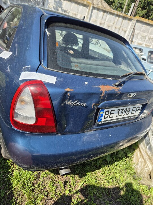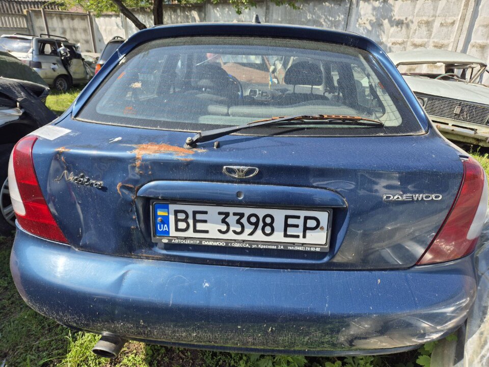 Автомобіль легковий Daewoo Nubira, 1998 року випуску, державний номерний знак BE3398EP, номер кузова KLAJF486EWK215520, синього кольору, містить пошкодження лобового скла (тріщини), вмятини та сколи по кузову автомобіля, наявні сліди ржавчини, на передніх дверях зламані ручки відкривання дверей автомобіля, техпаспорт на автомобіль відсутній, ключи в наявності, останні зафіксовані показники спідометра 133785 км.