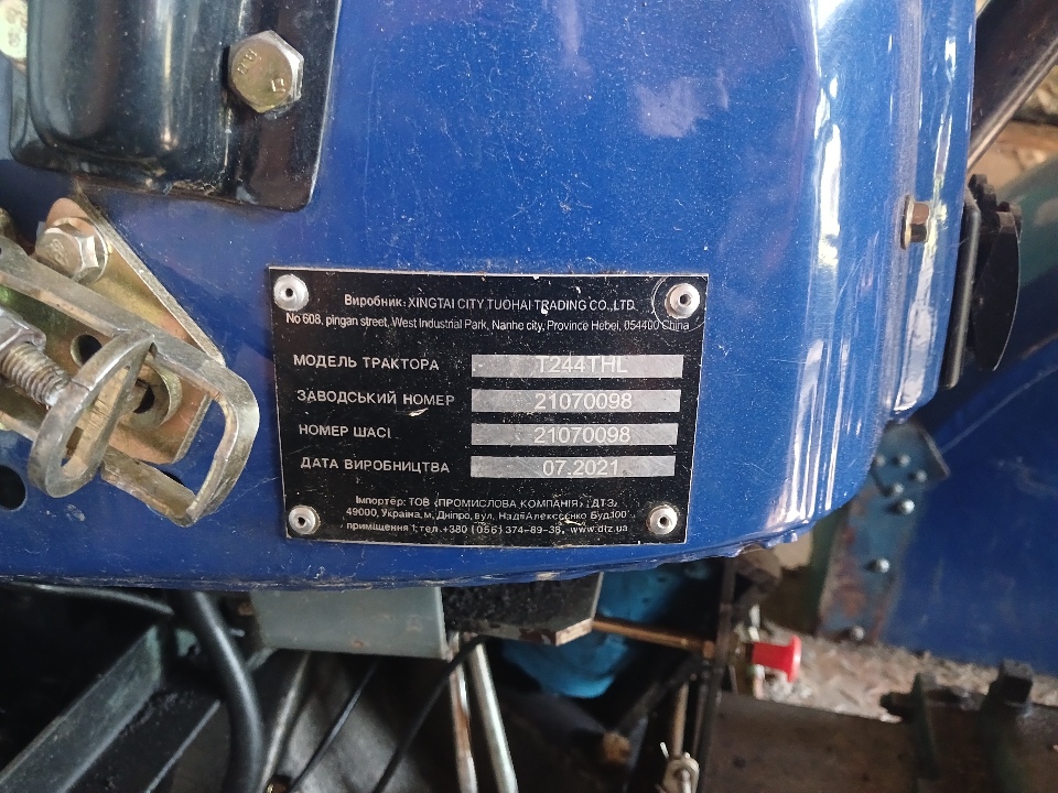 Конфіскація майна за ухвалою суду: марка КТЗ - XINGTAI; модель КТЗ - T244THL; тип КТЗ - трактор; колір - синій; заводський номер - 21070098; реєстраційний номер - 59483ВК; двигун - не ідентифіковано; рік випуску - 2021; коробка передач - не ідентифіковано; строк експлуатації 4 роки 2 місяці; напрацювання, мотогод. - не ідентифіковано.