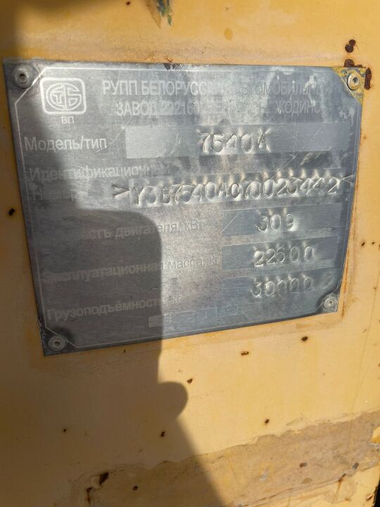 Самоскид марки БелАЗ-7540А, 2007 року випуску, двигун № 70020693, шасі (рама) № 23442, реєстраційний номер АХ № Т 02454 , по всьому кузову наявні пошкодження лако-фарбового покриття у вигляді подряпин, сколів та слідів іржі. Перевірити технічний стан, пробіг та повноту комплектації неможливо. Свідоцтво про реєстрацію транспортного засобу та ключі відсутні. Відомості про реєстрацію права власності підтверджено відповіддю Головного управління Держпраці у Харківській області