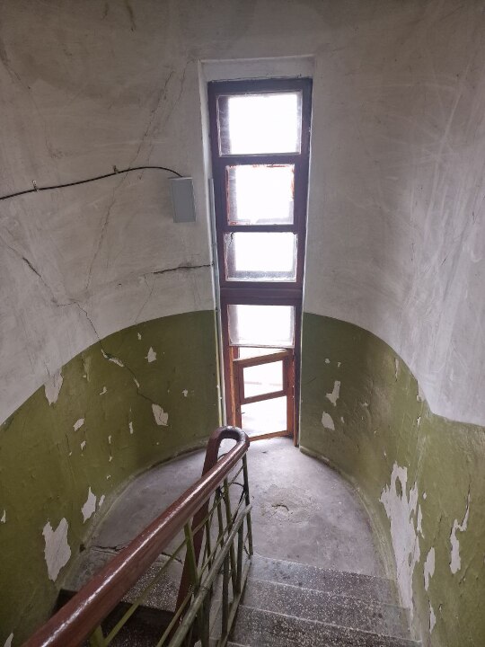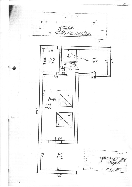 Фундамент, стіни, перегородки - цегляні, перекриття - залізобетонні плити, підлога - бетон, дах і покрівля - металевий шифер.
