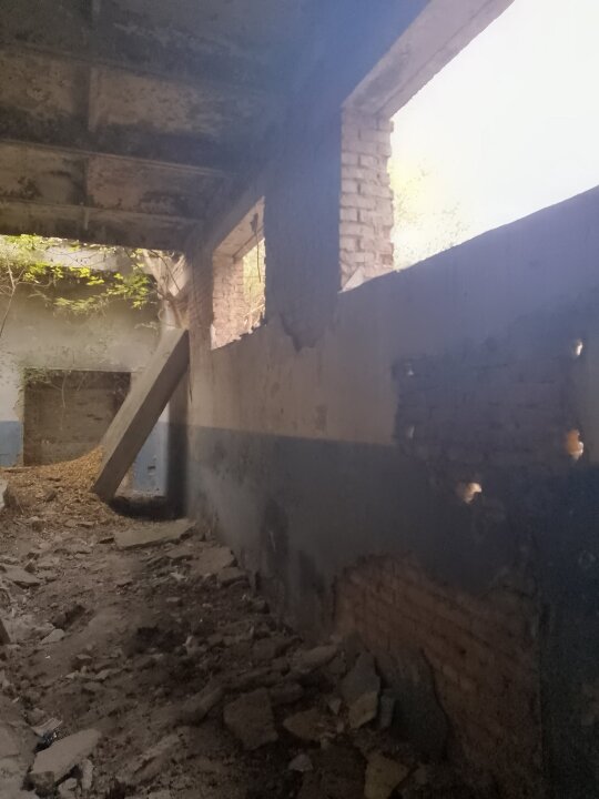 Фактичний стан - будівля частково зруйнована, вікна, двері відсутні.