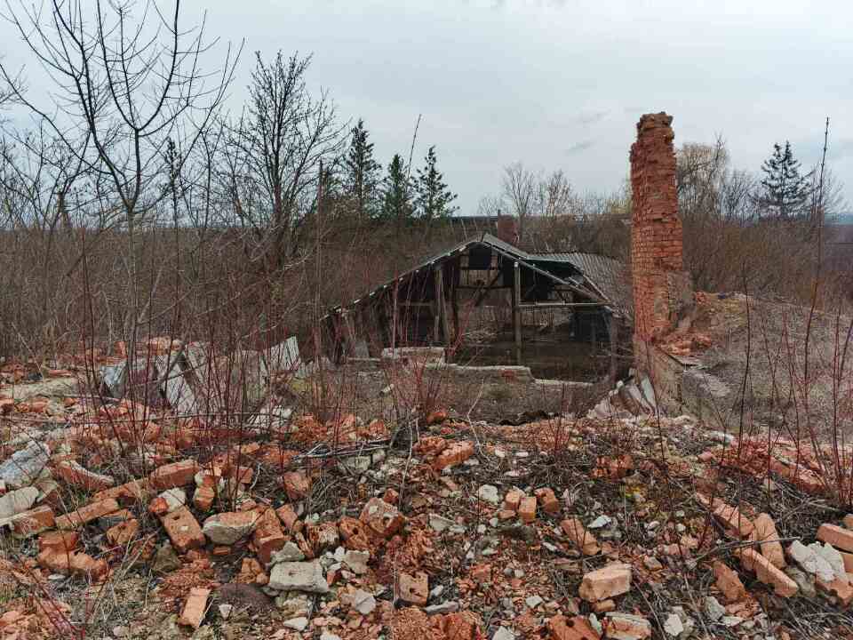 Опис будівель: адміністративний будинок (літ. А1), 80,3 кв. м., бригадний будинок з складом (літ. Б1), 55,1 кв. м., піч кільцева (літ. В1), 300,6 кв. м., сарай для сушки цегли № 4 (літ. Г1), 613,7 кв. м., сарай для сушки цегли № 3 (літ. Д1), 631,6 кв. м., пресувальний цех (літ. З1), 250,3 кв. м., лазня (літ. І1), 30,7 кв. м., насосна (літ. Й1), 8,7 кв. м., кухня (літ. К1), 7,7 кв. м., погреб (літ. Л1), 15,5 кв. м.