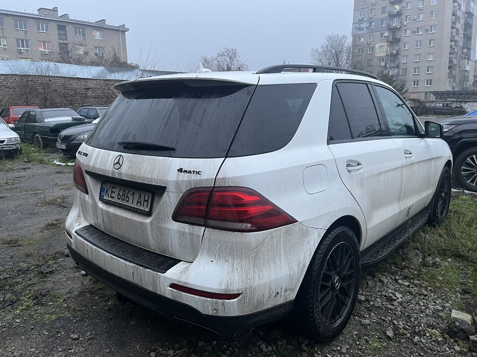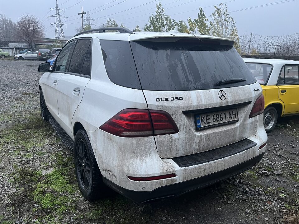 Легковий автомобіль марки MERCEDES-BENZ, модель GLE 350, 2016 року випуску, VIN-4JGDA5HB5HA828502, номерний знак KE6861AH, білого кольору. Авто знаходиться у брудному стані, на передньому бампері автомобіля з правої сторони пошкодження у вигляді подряпини, авто знаходиться без ключів, а отже перевірити салон, показники одометру на наявність АКБ немає можливості.Свідоцтво про реєстрацію транспортного засобу від автомобіля відсутнє.