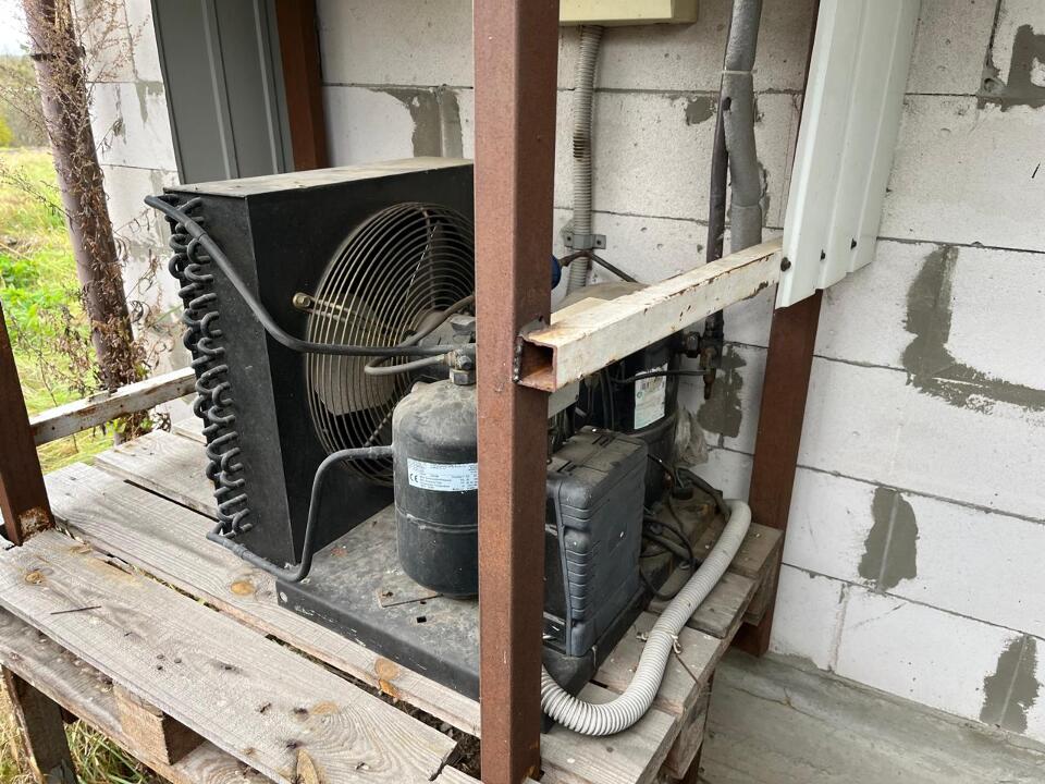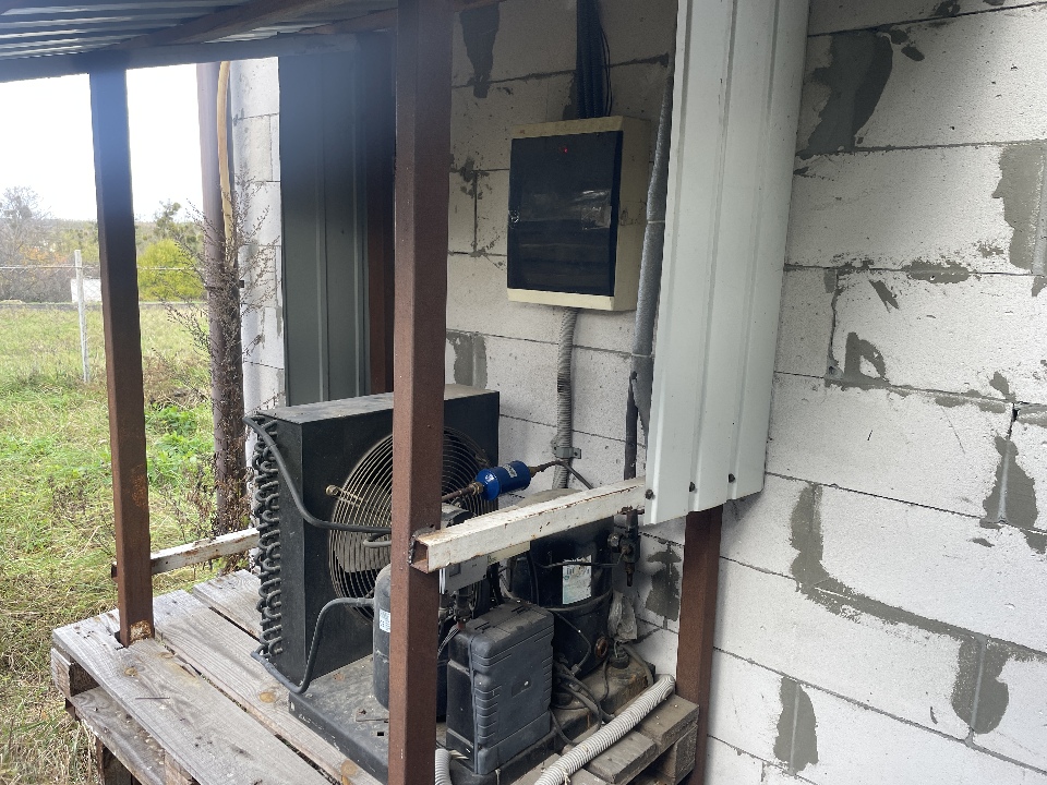 Матеріал фундаменту будівлі: бетон; матеріал стін будівлі: цегла, газоблок, метал, ДСП; матеріал покрівлі: металопрофіль; перекриття дерев’яне та металеве; підлога: цементна стяжка, земля.