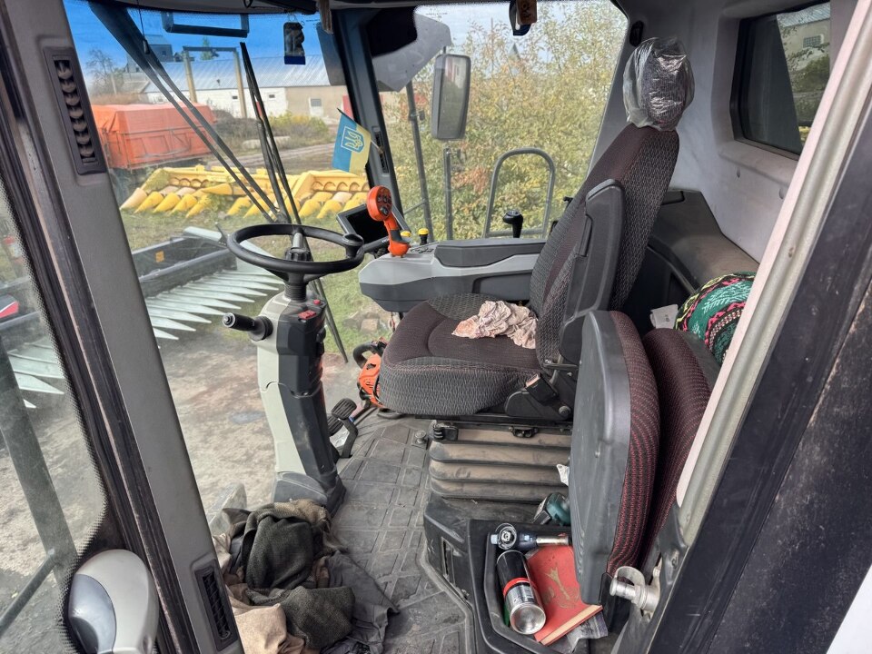 На час опису встановлено. що комбайн перебуває на ремонті рухомих частин: роликів та ременів. Зовнішній стан комбайну - задовільний, явних пошкоджень не виявлено. Комбайн не на ходу, потребує заміни понижуючого редуктора. Доступ до кабіни салону є, двері відкриті, в замку запалення мається ключ. Загальний стан кабіни - задовільний. Номерних знаків не виявлено. Гума на передніх колесах різної марки: ліве переднє - VOCTYPE-AGRO 800/65/R32, праве переднє - ASCENSO HRR200, задні колеса - ROSAVA. Виявлено пошкодження пластикових елементів задньої частини. Встановити пробіг не виявилося можливим. Свідоцтво про реєстрацію ТЗ - відсутнє; встановити об'єм двигуна, вид палива, тощо не виявилось можливим.