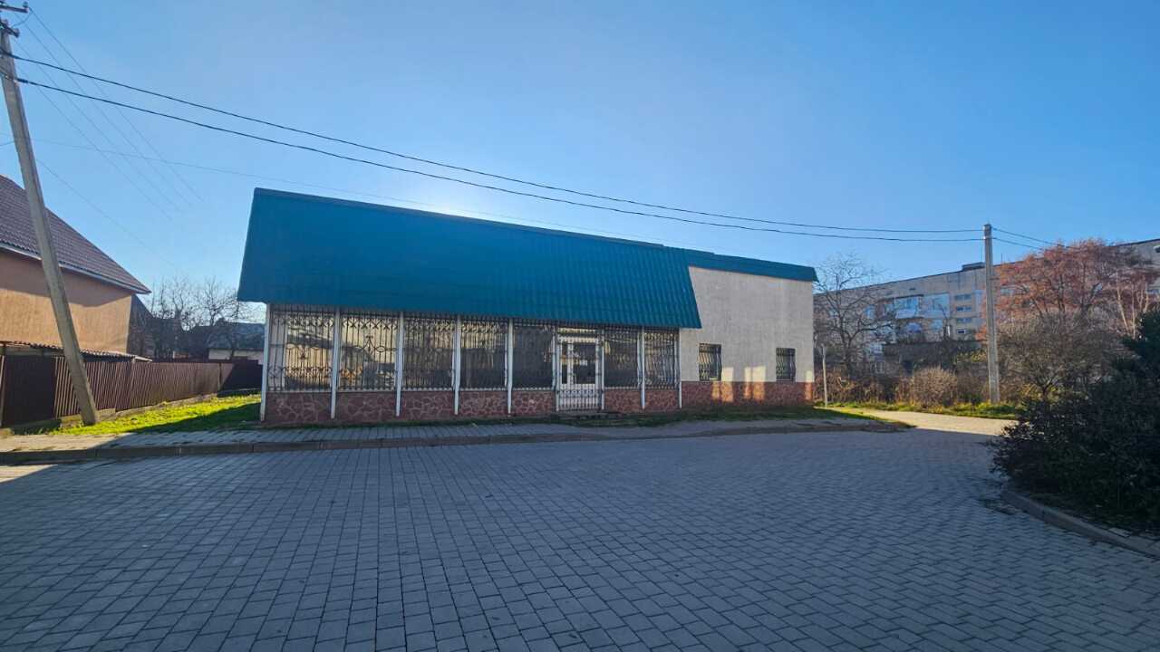 1/2 частина магазину "Спорттовари" загальною площею 352,9 м2. Магазин "Спорттовари" представляє собою одноповерхову будівлю та складається з торгового залу, кабінету, 5-ти підсобних приміщень та санвузла (приміщення №1 (котельня) площею 3,3 м2 та приміщення №11 (підсобне) площею 6,6 м2 не включені у загальну площу. Доступ до об'єкту здійснюється через окремий фасадний вхід. Конструктивні елементи об'єкту оцінки: фундамент - стрічковий бетонний; стіни - цегляні, металоконструкції; покрівля - металочерепиця, азбоцементні хвилясті листи; прорізи - металопластикові, металеві, дерев’яні; на зовнішніх прорізах встановлені металеві грати. Стан конструктивних елементів будівлі задовільний.Майно належить боржнику на праві Договору купівлі-продажу /2288/20.05.2003/ посвідченого приватним нотаріусом Бродівського нотаріального округу Матіяш Г.П.