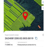 оренда земельної ділянки для ведення товарного сільськогосподарського виробництва, площею 7,5365 га, кадастровий номер 2624081200:02:003:0019, яка розташована за межами населеного пункту села Гаврилівка, урочище "Під лісом", Надвірнянського району, Івано-Франківської області