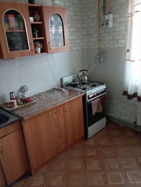 Загалом квартира складається з веранди, вбиральні, коридору, кухні та двох житлових кімнат. Стіни - черепашник, перекриття - дерево.