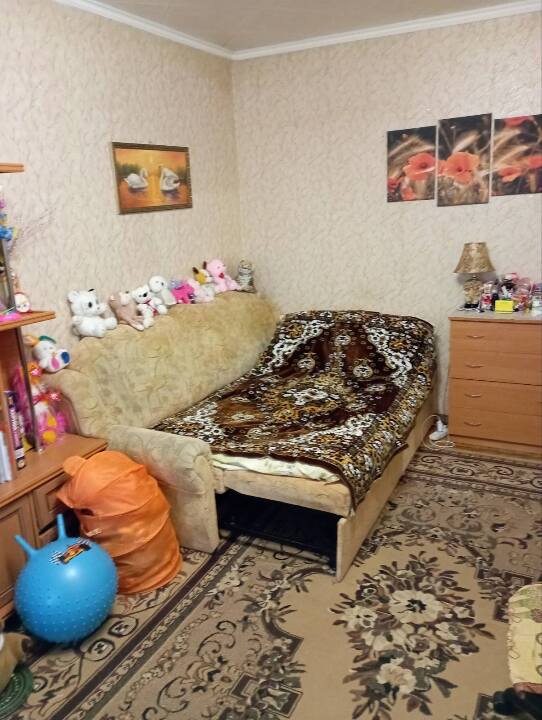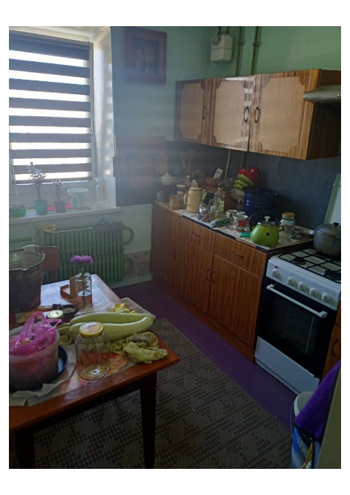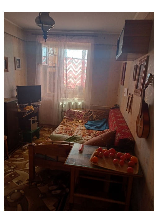 Квартира розташована на п’ятому поверсі п’ятиповерхового панельного будинку, стан задовільний, опалення центральне.