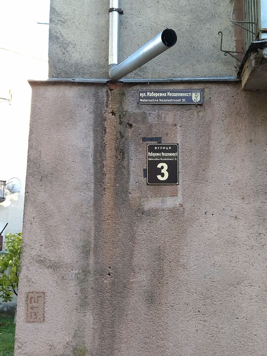 Вхід здійснюється з двору (металеві ворота на кодовому замку) через парадну дверь - дерев'яна старого зразка, пофарбовані у коричневий колір, наявні ознаки відшарування фарби, нижня частина дверей пофарбована у червоно-коричневий колір. Парадна всередині складається зі сходів та опорних металевих конструкцій.